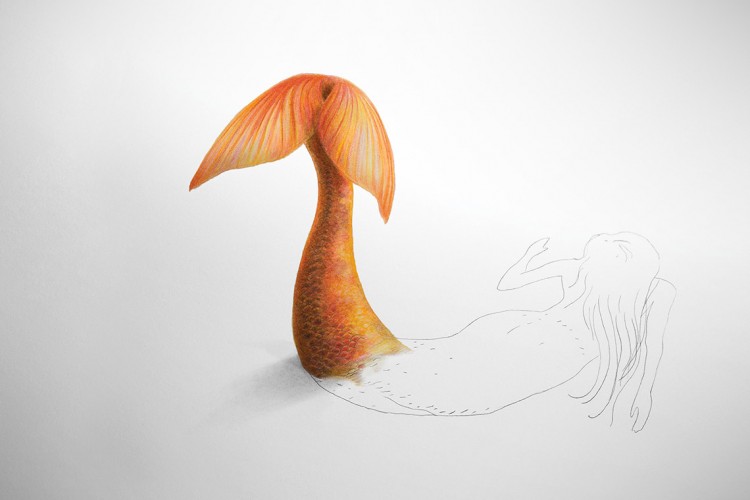 Art Director Camilo Gallon, of Melborp advertising agency, shows the effect of Scribe Colored Pencils firsthand with his illustrations of a unicorn, dinosaur and mermaid. In the series, one part of each drawing is colored and pops out of the page while the rest of the illustration, that isn’t colored, is flat and lifeless. The campaign is a clever way to show the difference color makes.