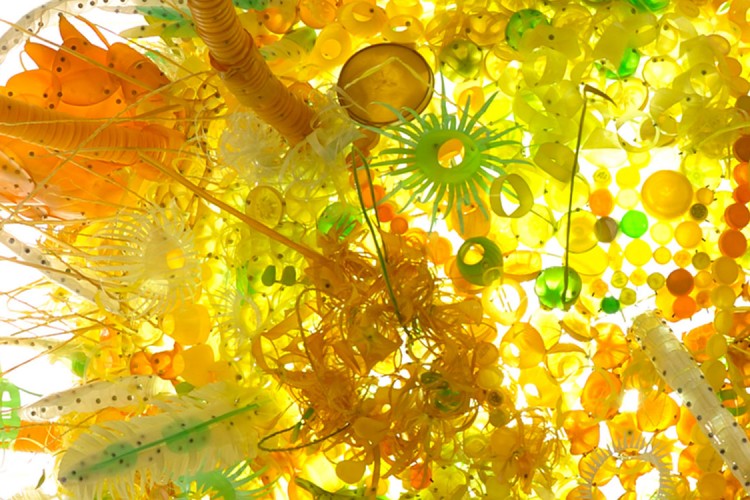 Converting wastefulness to tastefulness, New York-based Canadian artist Aurora Robson has crafted stunning sculptures and built mind-bogglingly beautiful hanging installations. The colors are diverse and exotic, as is the range of abstract shapes. Some appear ethereal, others akin to deep-sea creatures, while some seem to represent natural habitats and inner organs, and all created from discarded plastic bottles and the like.