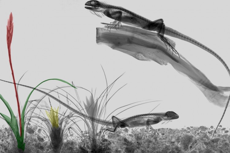 Many artists attempt to put nature under a microscope, but few actually X-ray it. Dutch artist and physicist Arie van’t Riet creates “Bioramas” of natural scenes of insects and animals, then digitizes and colors the black and white results in Photoshop. Most of his subjects are dead when he X-rays them, so he doesn’t expose them to radiation and he has the freedom to create the exact scene for the story he wants to tell.