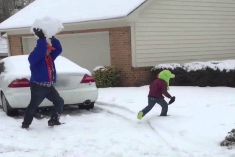 Parents vs kids is an age-old practice that pits the young uns’ with those trying to prove that they still got it. Most of the time, parents lose miserably and get hurt during the process but not this time. Enter dad showing off his snowball-making skills and his toddler trying to subterfuge his evil ploy by kicking at aforesaid clobbering device. We here at Lost HQ do not condone throwing anything at little kids but we couldn’t help but laugh at how this one went down. Parent one, kid zero…at least until that kid grows up and throws an even bigger one back at his aging father.