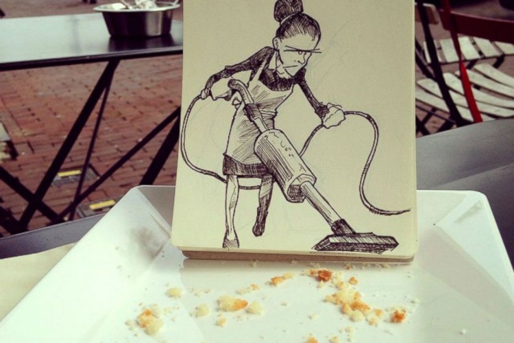 David Troquier coins the term ‘cartoon bombing’ from what started out as a break from the monotonous landscape drawing he was making during a vacation in the Greek islands. The Amsterdam-based illustrator doodles characters on paper and places them in humdrum environments to instantly transform the scene into an entertaining sketch straight out of a comic book. Armed with sketchbooks, pencils, and his iPhone, Troqman, as he likes to be called, is always on the lookout for adding a little creativity and lighthearted fun into a boring space and does his impromptu scene sketches solely for entertainment. Opportunities to create a story arise in everything and everywhere as Troquier doesn’t only see a hole in the floor but a perfect spot for some ice fishing, a loose toilet paper becomes the lifeline for a dangling man, and that garbage full of crumpled papers? It just became a scene straight out of a horror movie.