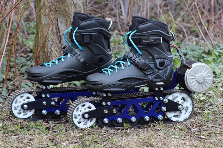 Off road adventure is once again improved with a new device built by Jack Skopinski. The EV4 Off-Road Rollerblades is an electric rollerblade featuring rubber tracks, two small motors powered by an 11-pound battery. These blades can propel you up to 9 MPH for up to 12 hours on a single charge.