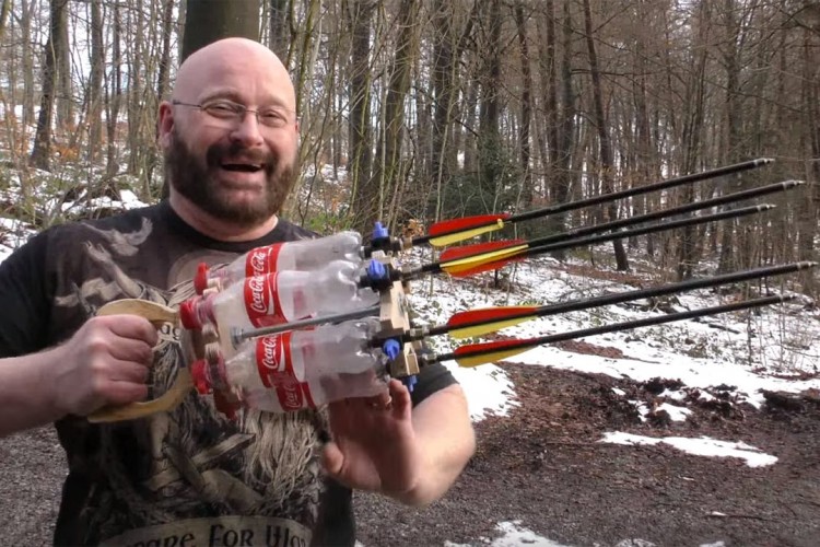 Never bring a coke bottle to a gun fight. Unless that bottle is part of the gatling gun that can fire a hailstorm of arrows at your enemies. Case-in-point: Joerg Sprave’s homemade fully automatic Coke Bottle Gatling featured on his Slingshot Channel . It uses repressurized Coke bottle on a disc, a motorized screwdriver and a compressor. Please don’t try this at home — unless you have all the parts.