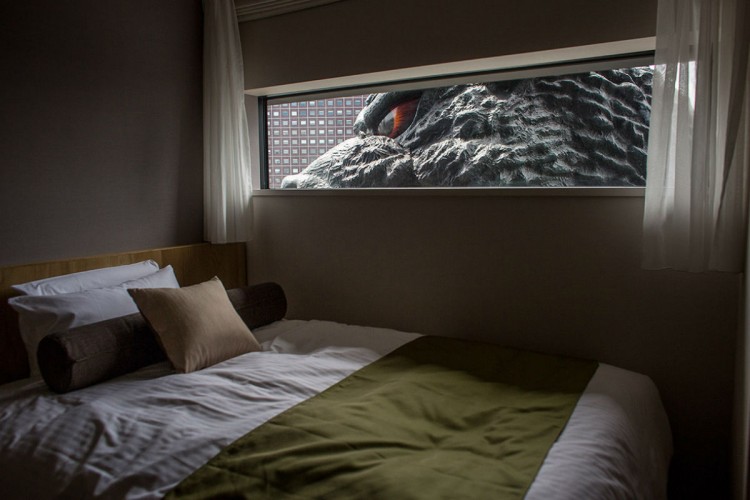 To commemorate one of their country’s greatest contributions to pop culture, Japan names Godzilla tourism ambassador for the city’s Shinjuku ward. Apart from a real-scale head of the city-destroying monster displayed on the balcony of a commercial complex at the Kabukicho shopping district in Tokyo, the Hotel Gracery Shinjuku is also dedicating some suites in its hotel in honor of the momentous occasion. Anyone fortunate enough to reserve a ‘Godzilla-view room’ will wake up to the menacing eyeball of a fire-breathing monster in their window while the Godzilla-theme room features the giant reptile’s hand plastered above the bed and a mini Godzilla to scare the socks off of guests waking up in the middle of the night to relieve themselves.
