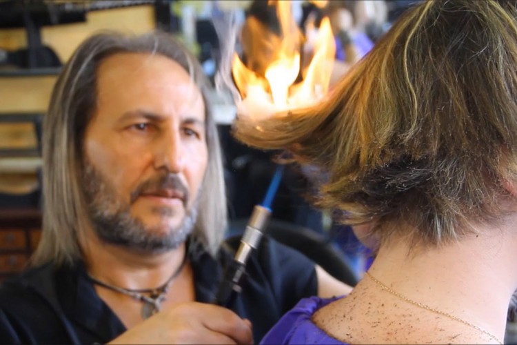 Hairstylist Alberto Olmedo in Madrid, Spain thinks cutting hair with scissors is too traditional. Instead he prefers to cut hair using tools like fire, swords, and even claws. He admits it’s a bit unusual, but still, gets great results.