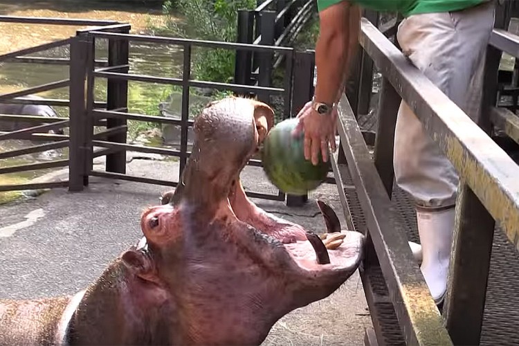 This week, we’re taking a break from posting videos of a hydraulic press destroying something. But to satisfy our need to see something being crushed, we bring you hippos devouring watermelons. There’s something oddly satisfying watching these lumbering giants eat whole watermelons in one bite.