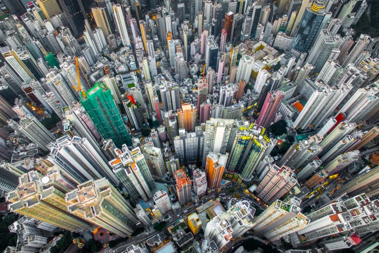 China’s overpopulation is usually evident in images of crowded city streets and people working in packed factories but Andy Yeung brings us a different perspective of the country’s overwhelming issue. The Hong-Kong based photographer used a drone outfitted with a wind-angle lens to capture Hong Kong’s skyscrapers from dizzying heights for the series “Urban Jungle.” Of 23.7% of Hong Kong’s land, only 6.8% is available for housing so it’s no surprise that the only way is up for the city’s 7 million residents.