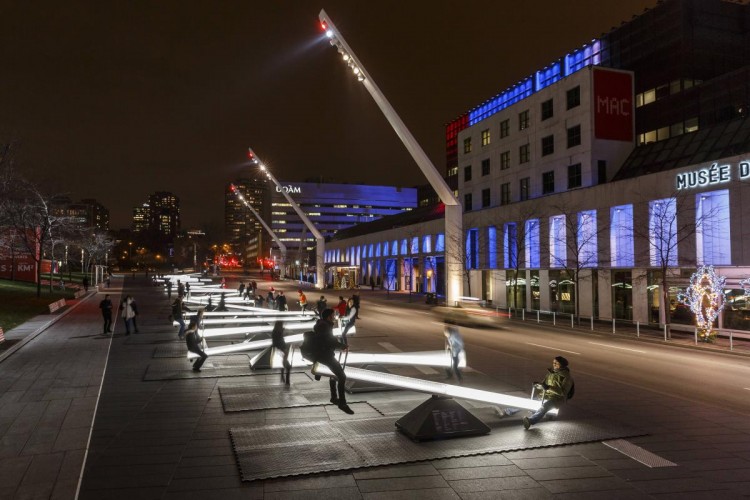 The sixth annual Luminothérapie is in full swing in Montreal, Canada and this year, the citizens of the metropolitan area can expect to get fully involved in experiencing ‘Impulse.’ Designed by Lateral Office and CS Design together with EGP Group, over 30 illuminated seesaws have been fitted with LED lights and speakers just beckoning everybody’s inner child to come out and play. The glow and sound of each seesaw changes with each varying angle prompting an orchestra of different sounds and lights to liven up the night at Place des Festivals. Luminothérapie will be on site until January 31, 2016.