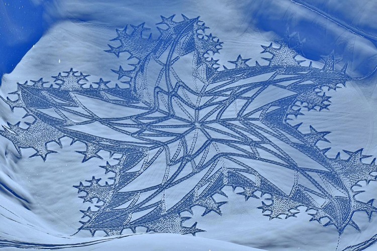 Right around now, everyone who lives up north is fed up with Old Man Winter so we’re here to inspire and remind people the beauty of freshly-fallen snow with some of Simon Beck‘s insanely symmetrical artwork. For the past decade, the snow artist has been trekking the Alps to create massive geometrical drawings that can take up to 12 hours of walking which amounts to roughly around 12 to 18 miles logged each day. Spanning anywhere from 2.5 to 10 acres in size, Beck designs each snow mural using what he describes as a ‘kind of reverse orienteering’ to plot the paths before plodding along in a pair of snowshoes. According to him, “The main lines and points are surveyed using a sighting compass (as used for surveying orienteering maps) with distance (established) either by pace counting or string.”