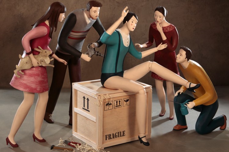 Artist Irma Gruenholz does things the laborious way in her new series of photographs of three-dimensional dioramas. To make them look like illustrations, she creates the clay models in full form and constructs the setting into a fully realized diorama before photographing it. The storybook inspired characters in the pieces have been featured in advertisements and prints around the world.