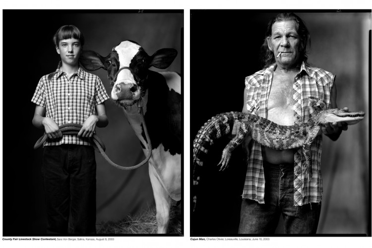 Fascinated by the diverse nature of the human race, photographer Mark Laita set about capturing it on film with these extraordinary black and white shots. Laita’s artistic vision has pitted the likes of a pimp against a polygamist, a ballerina with a boxer and Hells Angels’ with a group of choir boys. The results are funny, dark, beautiful and, most importantly, challenging. What makes us good, bad, sane or crazy is, unlike the pictures, not always as black and white as it may first seem. (Country Fair Livestock Show Contestant, 2003 / Cajun Man 2003 above)