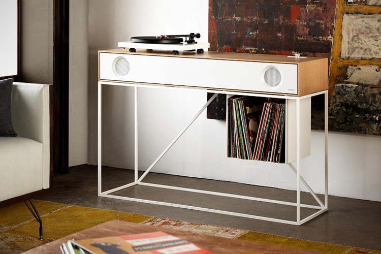 In case you have a cool $4k laying around, this Stereo Console from Symbol has got to be one of the coolest audio console we’ve seen around. Built to integrate all your media, it features a built-in 2.1 stereo system, two 4″ full range speakers, an 8″ subwoofer, and amplifier, volume and woofer level controls and two RCA audio inputs. The console is available in a number of finishes and comes with a modular storage bin.