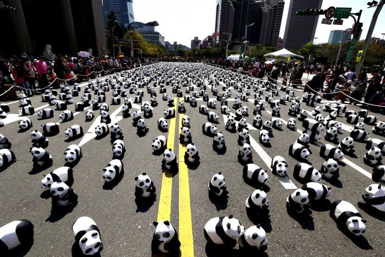 The World Wildlife Fund (WWF) enlisted the help of Paulo Grangeon in an attempt to bring the public’s attention to the plight of endangered animals around the world. The French artist created exactly 1600 papier mache giant pandas to signify the estimated number of the rarest member of the bear family currently still living in the wild. Since the initial debut of the “Pandas World Tour” in front of the Eiffel Tower in 2008, the bears have visited 20 cities around the world including Berlin, Hamburg, and Rome. Taipei is the first stop of the exhibition’s tour of Asia and they have since been spotted at the Chiang Kai-shek Memorial Hall, at the Civic Plaza in front of Taipei City Hall, boarding the Taipei Metro, and at the National Concert Hall. A total of 200 Formosan black bears joins the black-patched bears to highlight the plight of the only bear native to Taipei.