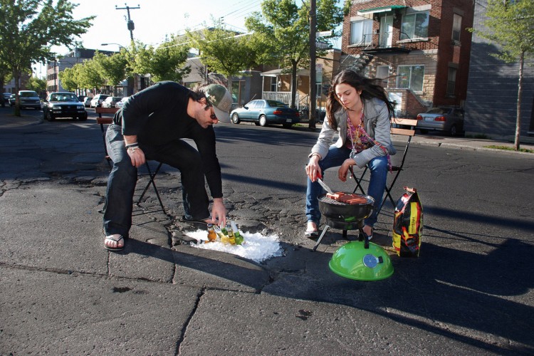 We’ve seen our share of ugly turned into art…unsightly tattoos, weapons, even other people’s trash. But we’ve never seen such a disdainful thing turned into art the way that husband and wife duo Claudia Ficca and Davide Luciano has with Potholes. Luciano came up with the idea when he crashed into a pothole and decided to vent his anger into creativity using the cavernous holes as the main star. The Canadian artists have exposed the ugliness of hole-ridden streets from New York to Los Angeles and with just a few props and models, and through uninterrupted traffic, the whole process just takes 10 minutes. The result is a transformation of what people may refer to as the bane of their commuting existence into humorous, satirical, and tongue-in-cheek collection of photographs. From Santa Claus to Alice in Wonderland, the subjects have been varied but we especially love the baby getting baptized with water from the street runoff.