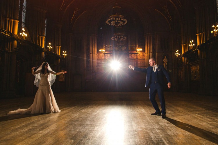 Potterheads will ooh and ahh over Cassie and Lewis’ grand Harry Potter-themed wedding held at The Midland Hotel in Manchester, England. No details were spared in creating the magical reception where details of the epic fantasy can be spotted in every corner from the 130 hand-made wand favors to the Azkaban-style “Wanted” posters of the couple and bridal party. The couple re-watched all the Harry Potter movies to take away ideas to prepare for their magical event and visited numerous goodwill stores and eBay to help them find just the right pieces for their dream wedding. Not surprisingly, the crafty duo wanted their wedding to look as authentic and special as possible from the unique bouquets made from the pages of 20 Harry Potter books to the house crest hand-painted by the bride adorning each table. The special little touches made this nuptials a truly extraordinary one and brings justice to Rowling’s literary phenomenon. (All images properties of wedding photographer Kelly Clarke).