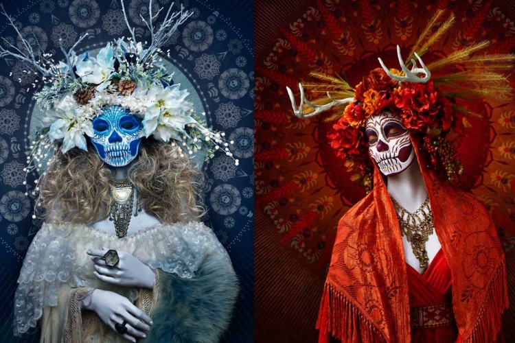 We’ve featured one of Tim Tadder’s more lighthearted work before but with ‘Las Muertas,’ the California-based commercial photographer dabbles into the realms of the underworld. The haunting photo series dedicated to the famous Mexican holiday Dia De Los Muertos features models covered in vibrant makeup and dramatic costumes that makes for an amazing contrast against the bleak, deserted background. Krisztianna, whose sculptures on Dia De Los Muertos inspired the collaboration, created the amazingly detailed headdresses and intricate face paintings for the Winter, Spring, Summer, and Fall theme of the project.