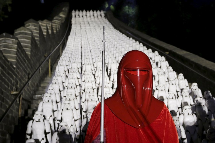 Five hundred replicas of the Stormtroopers characters from "Star Wars" are seen on the steps at the Juyongguan section of the Great Wall of China during a promotional event for "Star Wars: The Force Awakens" film, on the outskirts of Beijing