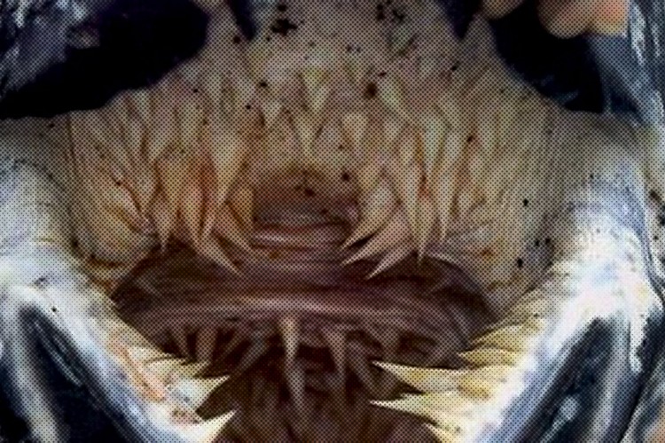 What could pass for a Sarlacc pit is actually the mouth of a leatherback turtle. Leatherback turtles are the largest of all living turtles, growing up to 7 feet long and exceeding 2,000 pounds. The turtles have backwards spines in their throats to help them swallow food and to prevent its prey from escaping when caught. Their diet consists almost entirely of jellyfish.