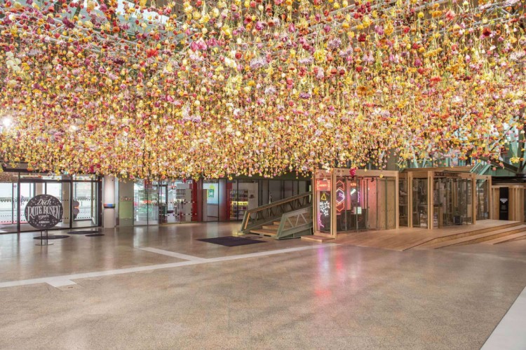 Using more than 30,000 donated flowers by The Flower Council of Holland, Rebecca Louise Law creates ‘Garden,’ her debut art installation in Germany on display at Bikini Berlin. The British artist hung rows and rows of flowers over 400 sq feet of space over the atrium transforming a piece of the concept mall into an awe-inspiring exhibit welcoming the spring season. Louise Law is known for her large format installations using natural objects like stones, branches and flowers as an exploration of the relationship between mankind and nature. The exhibit will be on display until May 1, 2016.
